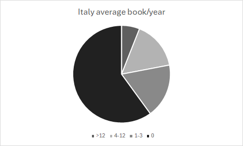 That puts my high school/university self squarely in the majority of Italians—maybe the only time —since the average Italian reads less than one book a year.